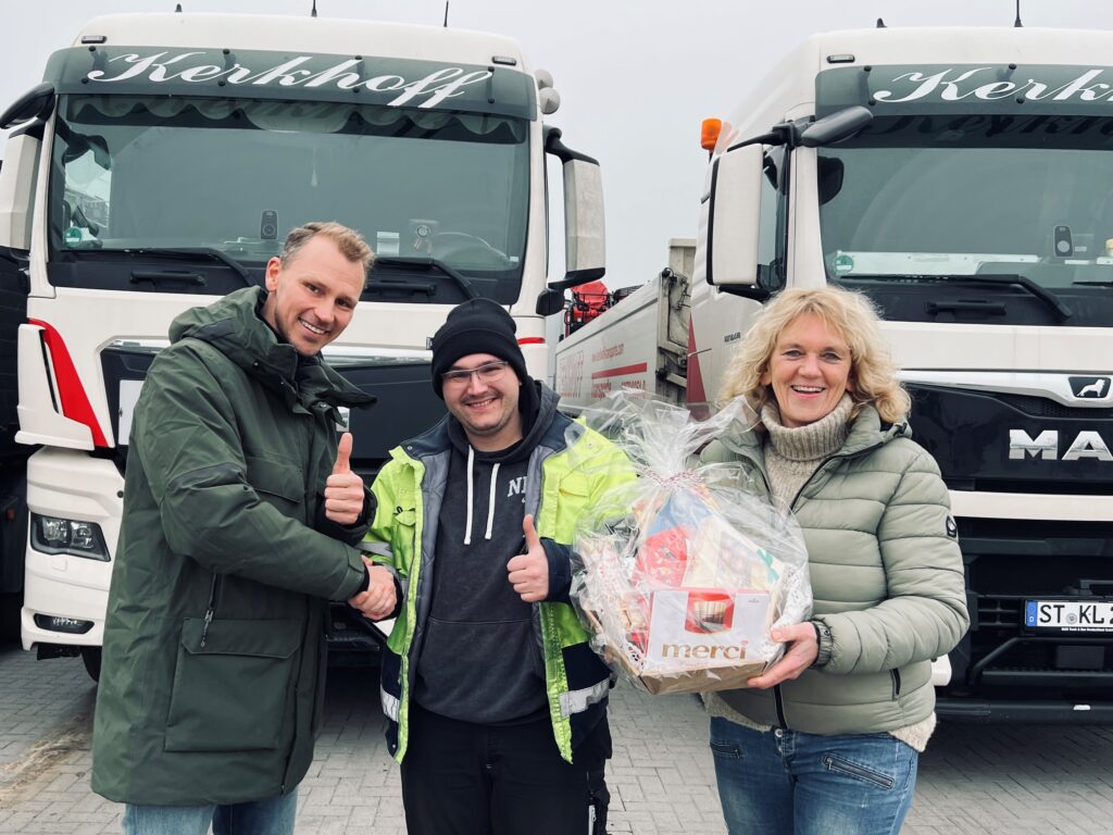 „Ich freue mich auf die weitere Zeit bei Kerkhoff Transporte, die Arbeit macht mir Spaß und ich bedanke mich für die tolle Unterstützung während der letzten Jahre meiner Berufsausbildung“ entgegnete Harald Fuchs zum Abschluss.
